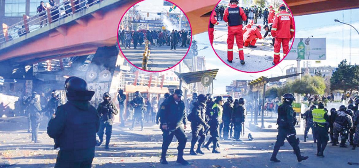 Rechaçando a presença da autointitulada presidenta Jeanine Áñez, as primeiras confrontações se deram lugar na zona 25 de Julho do Distrito 8, durante a Sessão de Honra da Câmara de Senadores, e a segunda na Ceja, após a sessão do Conselho Municipal.