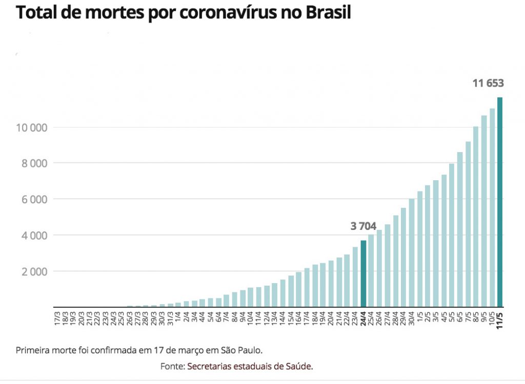 Os dados sobre o coronavírus no Brasil divulgados nesta terça-feira (12), confiram a tendência de expansão acentuado da Covid-19 no país. Foram registradas uma soma total de 12.400 mortes provocadas pela Covid-19 e 177.589 casos confirmados da doença em todo o país. Em 24 horas, foram registradas mais 881 novas mortes, sendo que 206 ocorreram nos últimos três dias.