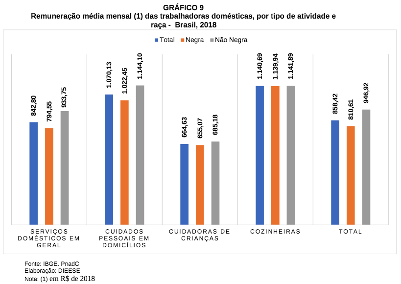 Um estudo feito pelo Departamento Intersindical de Estatística e Estudos Sócio-Econômicos (Dieese) denominado “Quem cuida das cuidadoras: Trabalho doméstico remunerado em tempos de coronavírus” concluiu que a crise causada pela pandemia da covid-19 no Brasil exacerbou as relações de desigualdade existentes no país, e o emprego doméstico foi diretamente afetado.