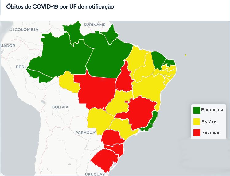 Essa comparação leva em conta a média de mortes nos últimos 7 dias até a publicação deste balanço em relação à média registrada duas semanas atrás.