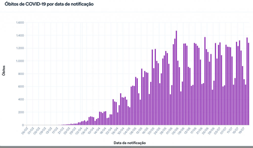Embora os números recentes sejam alarmantes, o recorde de hoje levanta um sinal de alerta caso se mantenha, pois representa aumento proporcional de mortes no prazo de duas semanas. Com isso, a curva em platô mantida nas últimas semanas tende a mostrar nova elevação nos próximos dias.