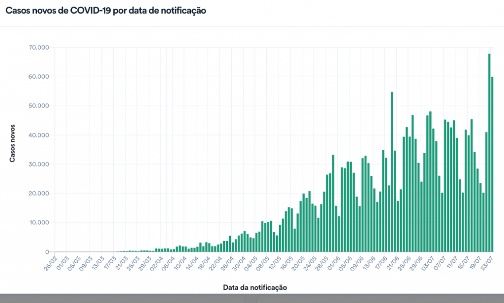 Com mais 60 mil novos casos, apenas 4 estados reduziram contágio