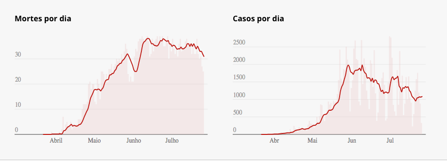 A média de mortes por dia caiu gradualmente de 1o. de junho para cá, de 40 para seis, como mostra a tabela abaixo.