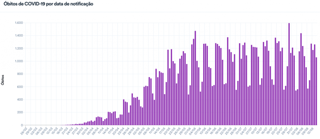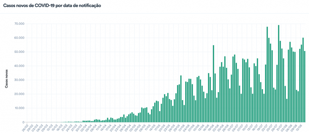 Nas últimas 24 horas foram registrados 1.060 novos óbitos e foram notificadas 50.644 novas infecções.