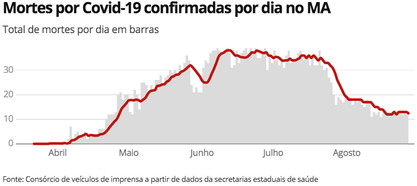 - Em estabilidade, ou seja, o número de mortes não caiu nem subiu significativamente: RS, MG, SP, PA, RO, BA, MA, PB e RN.