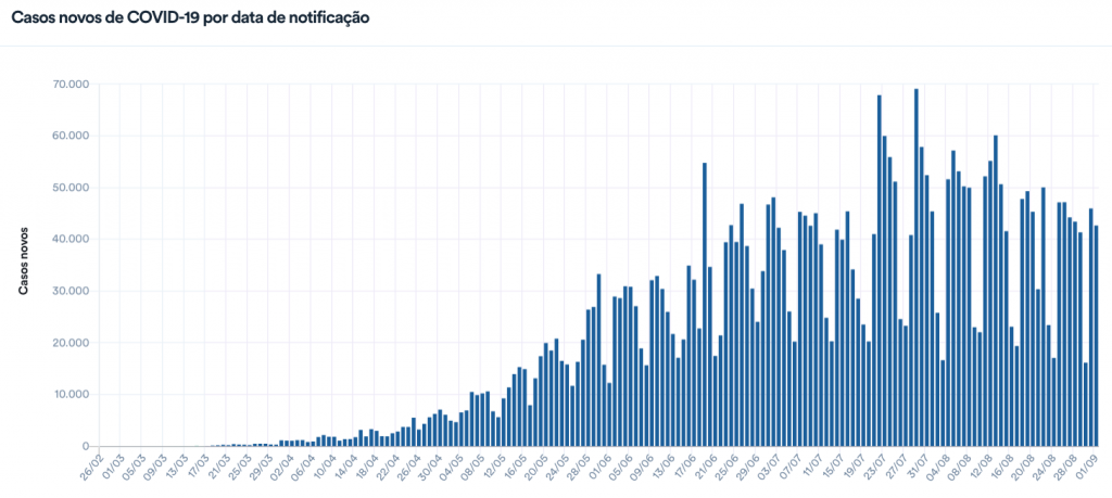 Com 42,6 mil novos contágios, Brasil mantém queda lenta e gradual