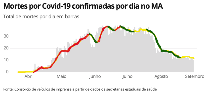 - Em estabilidade, ou seja, o número de mortes não caiu nem subiu significativamente: PR, RS, RJ, SP, GO, MS, MT, PA, MA e PI.