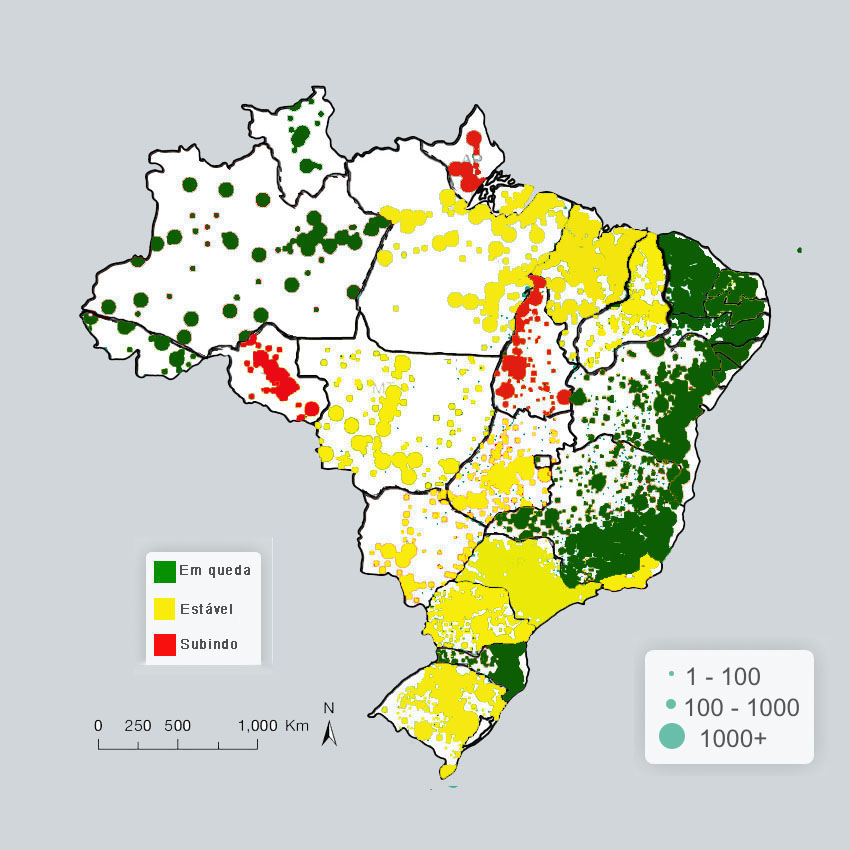 - Em queda: SC, ES, MG, DF, AC, AM, RR, AL, BA, CE, PB, PE, RN e SE.
