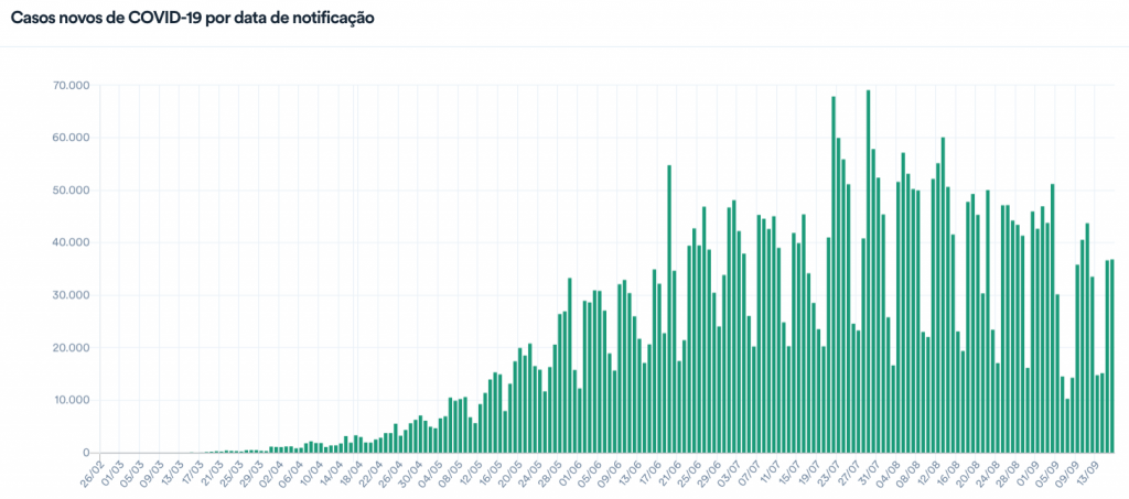 Ainda segundo a pasta, o Brasil registrou 36.820 novos diagnósticos entre ontem e hoje. Ao todo, o país já contabilizou 4.419.083 casos confirmados do novo coronavírus.