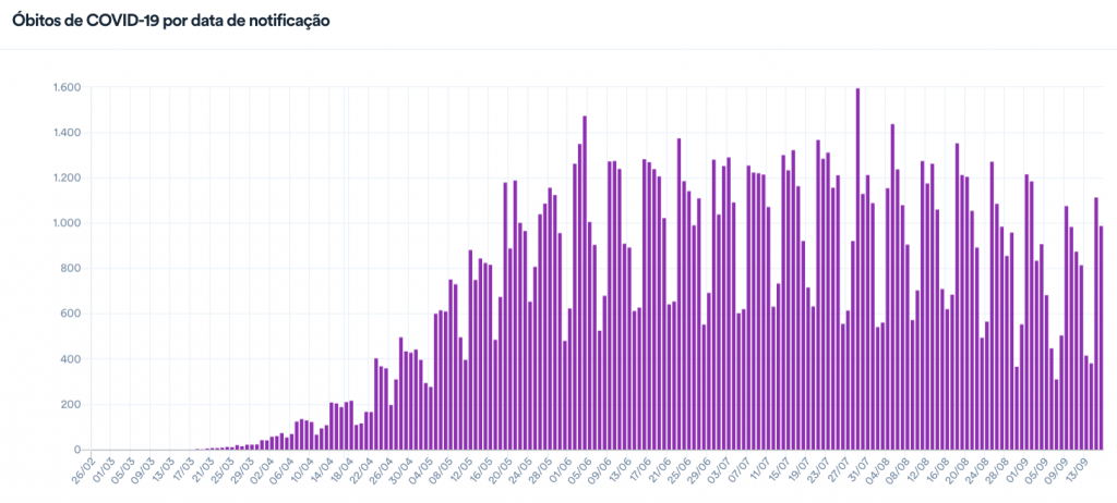 Com 987 novas mortes por Covid-19 em 24h, Brasil mantém viés de baixa