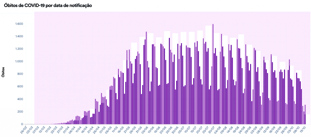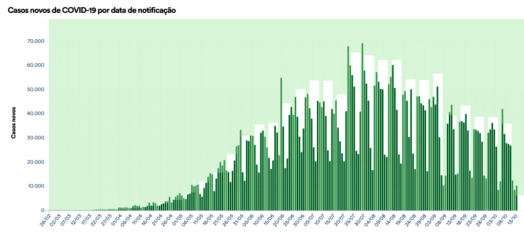 O número de casos e de mortes é menor nos domingos e nas segundas-feiras por causa da limitação de sistematização dos dados e alimentação do painel do Ministério da Saúde pelas secretarias estaduais nos fins de semana.