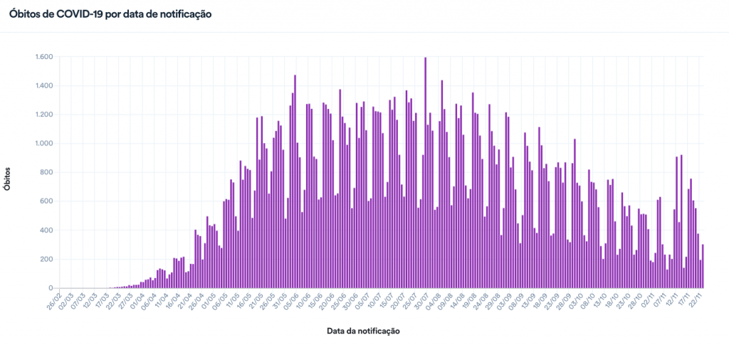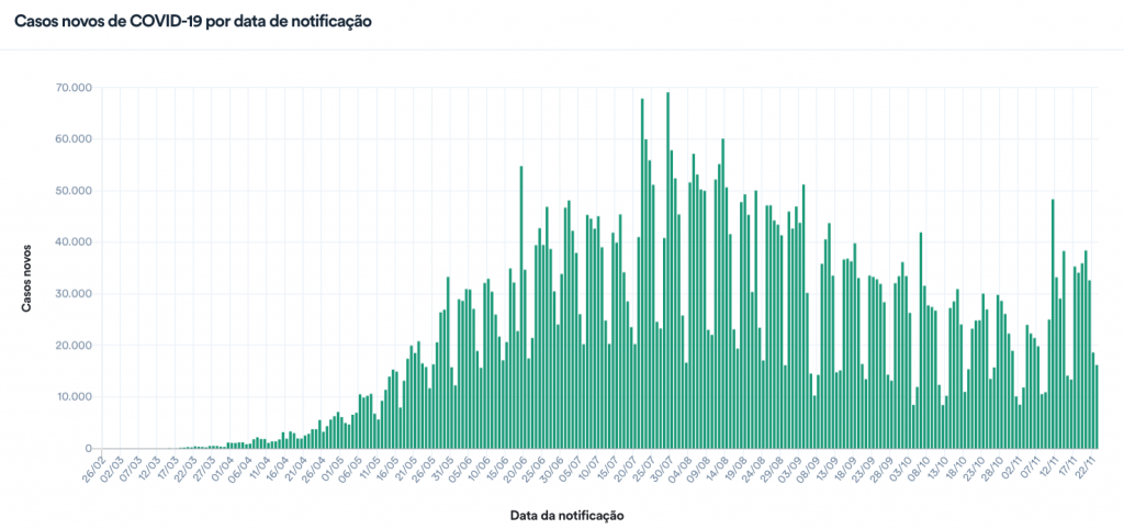 Situação epidemiológica da Covid-19 no Brasil 23/11/2020 – 23/11/2020/Divulgação/Ministério da Saúde