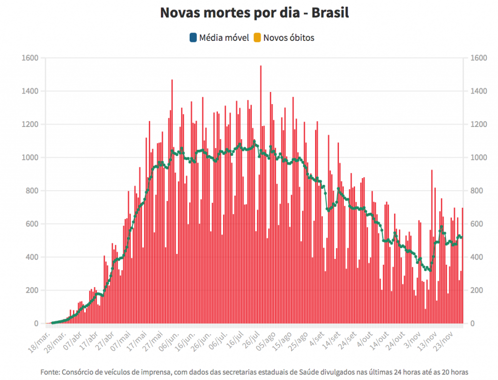 Situação epidemiológica da covid-19 no Brasil 01/12/2020 – 01/12/2020/Divulgação/Ministério da Saúde