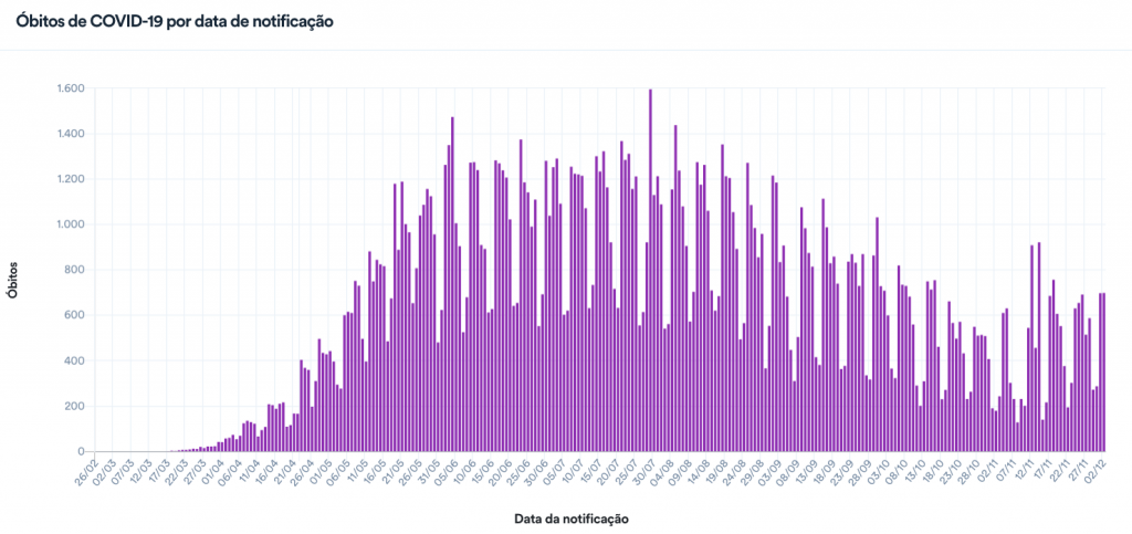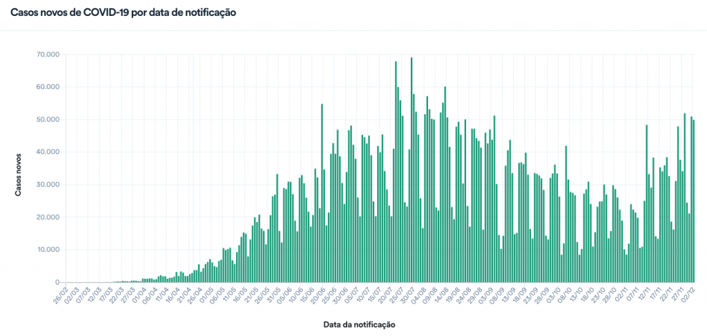 Situação epidemiológica da covid-19 no Brasil 02/12/2020 – 02/12/2020/Divulgação/Ministério da Saúde