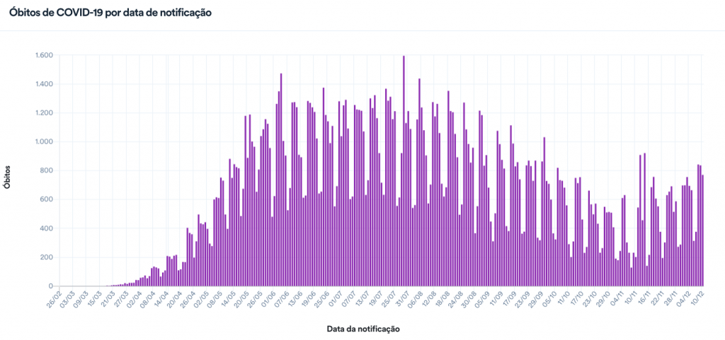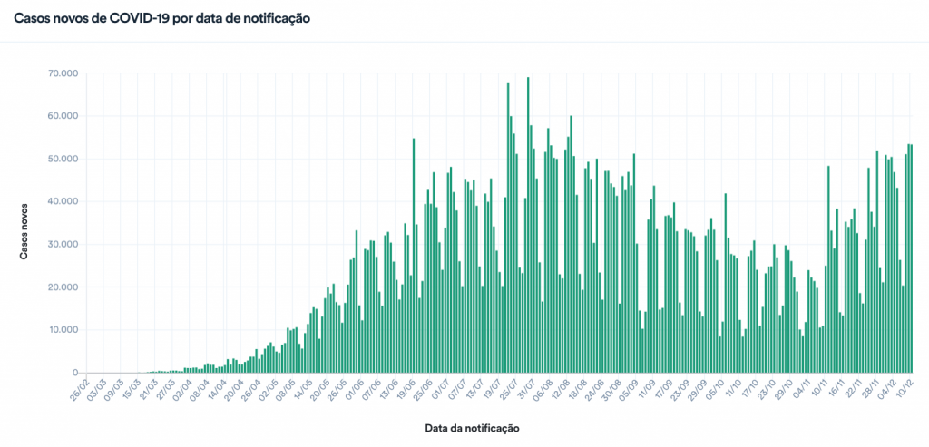 Situação epidemiológica da covid-19 no Brasil 10/12/2020 – 10/12/2020/Divulgação/Ministério da Saúde