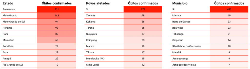Xavante, Kokama e Terena são os povos mais atingidos, mas dados do governo são falhos. Dados mais abrangentes são da Articulação dos Povos Indígenas do Brasil (Apib).