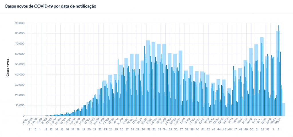 2021 começa ultrapassando pico de contágios da primeira onda da Covid