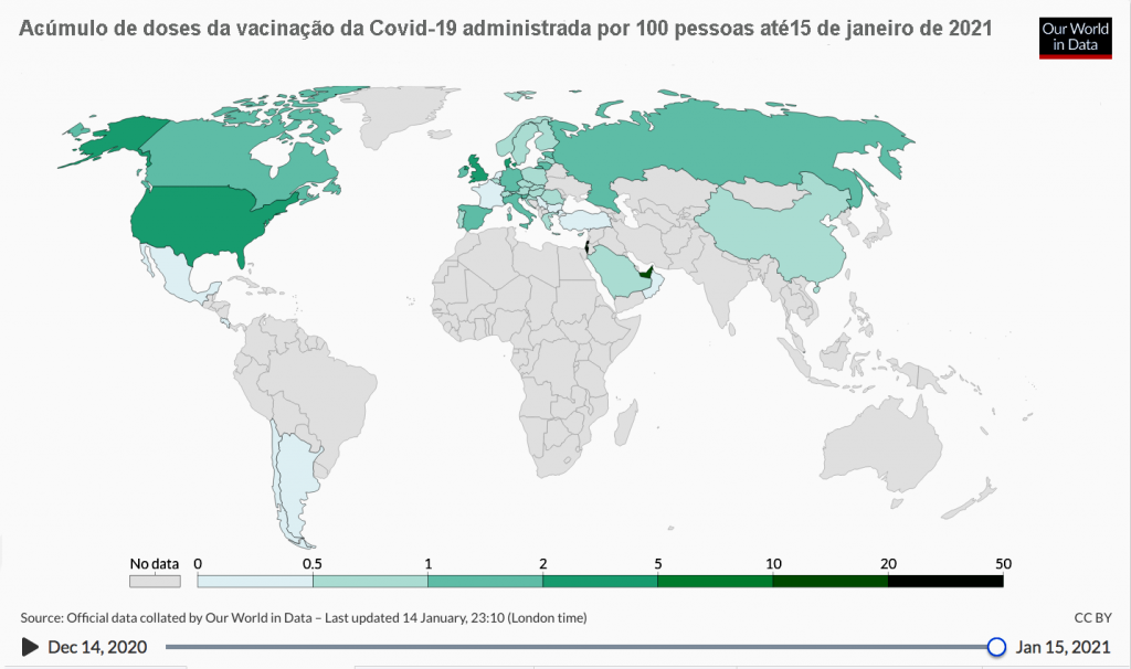 Pesquisadores sediados em Oxford reúnem dados sobre avanços e atrasos da vacinação, explicando para leigos seu significado. Até o momento, são 50 países com avanços no processo de imunização.