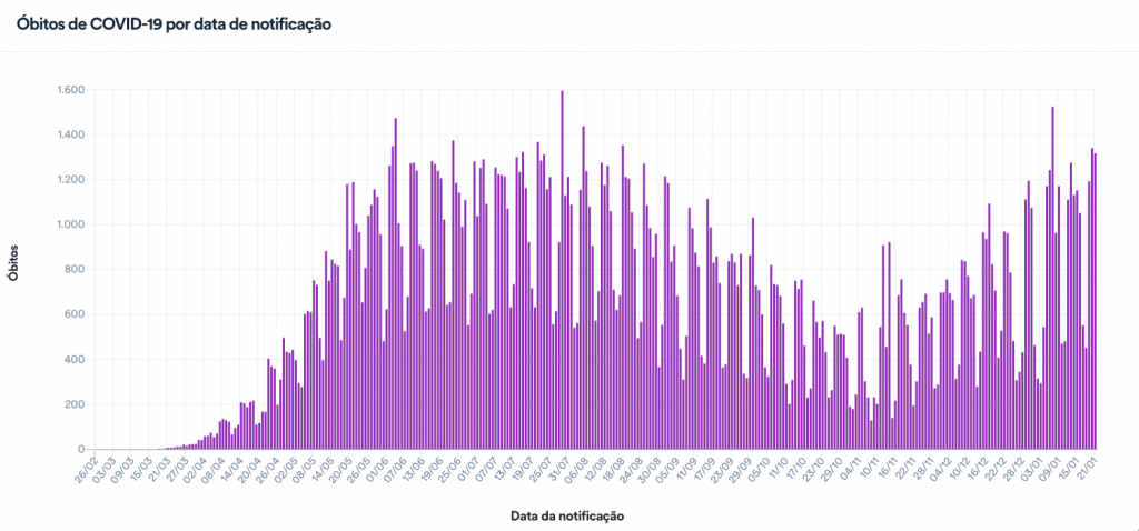 Covid-19: Brasil volta a ter média de mais de mil mortos por dia