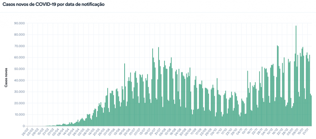 Brasil mantém média de 1055 mortes por covid-19 em 24 h