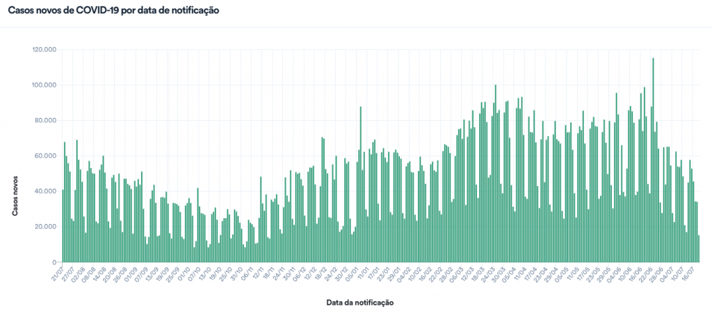 Os dados, em geral, são menores aos domingos e às segundas-feiras em razão da dificuldade de alimentação do sistema pelas secretarias estaduais. Já às terças-feiras, os resultados tendem a ser maiores pela regularização dos registros acumulados durante o fim-de-semana.