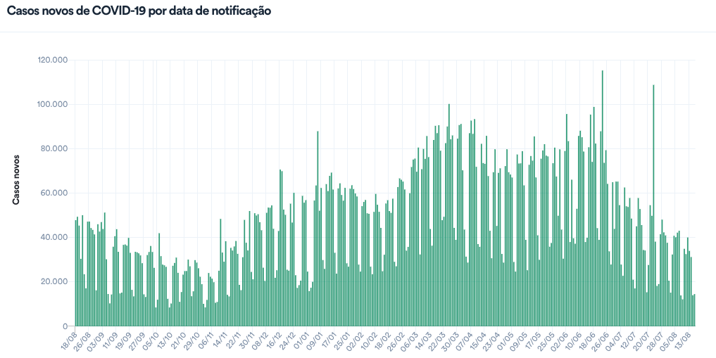 Os dados em geral são menores aos domingos e segundas-feiras em razão da dificuldade de alimentação do sistema pelas secretarias estaduais. Já às terças-feiras os resultados tendem a ser maiores pela regularização dos registros acumulados durante o fim-de-semana.