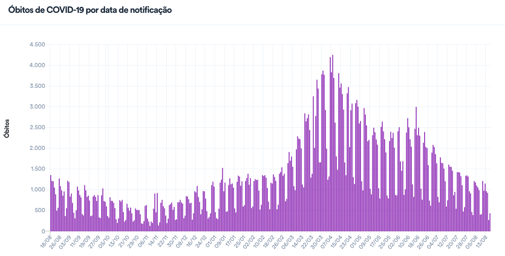O índice de mortalidade (quantidade de óbitos por 100 mil habitantes) é de 271. As autoridades de saúde investigam 3.562 falecimentos para avaliar se foram resultados da covid-19.