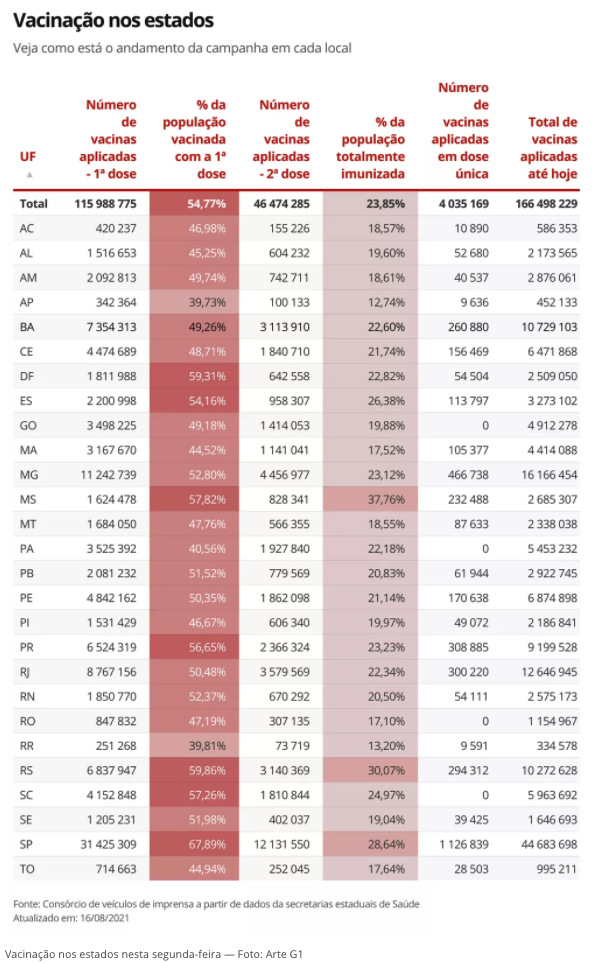 Somando a primeira, a segunda e a dose única, são 166.498.229 doses aplicadas.