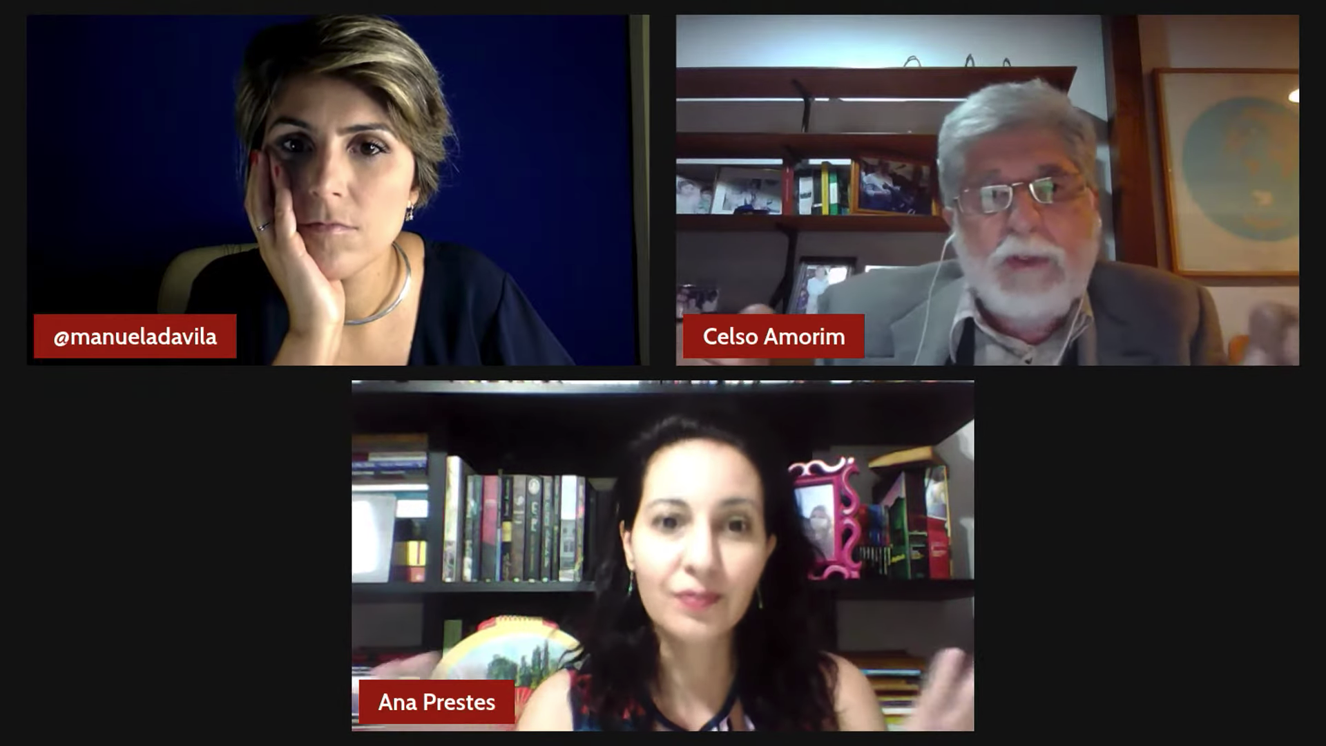 A América Latina, por sua vez, não ocupa papel nenhum nessa nova ordem que se constrói, pelo papel apequenado que o Brasil assumiu na geopolítica. É o que lembra Manuela. Amorim, por sua vez, considera que o Brasil faz muita falta, ao citar interlocutores internacionais que se referem a isso, como “o vazio brasileiro”. Por outro lado, ele se preocupa com a postura norte-americana conforme os maiores países latinos sejam governados por políticos progressistas.