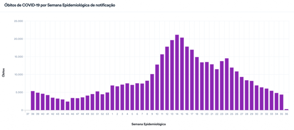 A maioria dos estados (15) estão em desaceleração de óbitos (PR, SP, MT, AC, AM, PA, TO, AL, CE, MA, PB, PI, RN e SE), enquanto outros seis e o DF permanecem estabilizados.