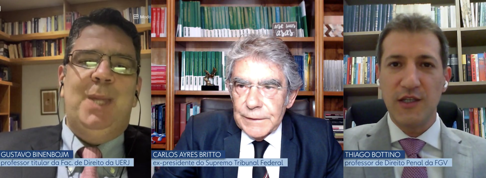 Entre os especialistas do direito que defenderam a tese está Gustavo Binenbojm, doutor em Direito Público e professor da Universidade Estadual do Rio de Janeiro, o ex-presidente do Supremo Carlos Ayres Britto, o ex-ministro do STF Celso de Mello e o professor de Direito Penal da fundação Getúlio Vargas, Thiago Bottino.