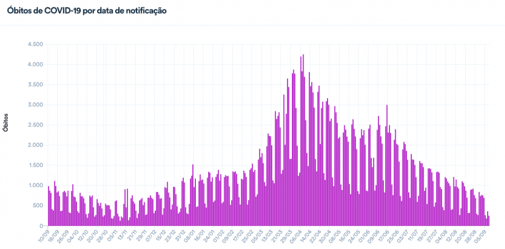 Em todo o país mais de 585 mil pessoas morreram pela doença, com média diária de 457 em franca queda, além da vacinação ter chegado a 33%.