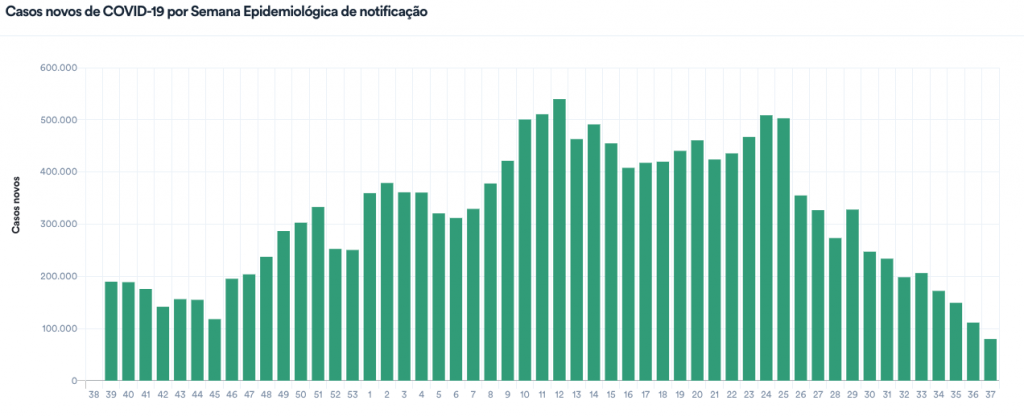 Os estados em queda de óbitos caíram para 8 mais o DF (AL, BA, DF, CE, GO, MA, AM, MS, SE). Os demais 14 estados estão com números estabilizados, o que sinaliza preocupação com as semanas anteriores.
