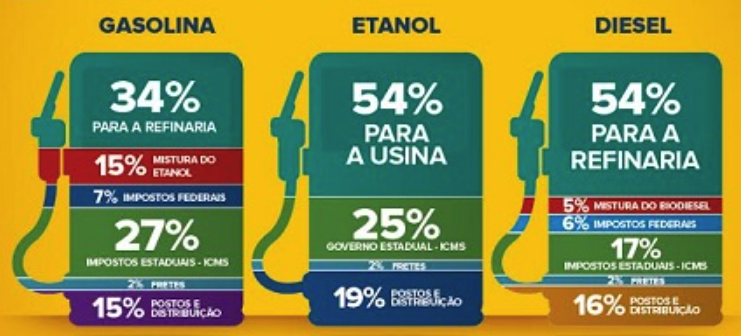 Segundo o parlamentar, o ICMS constitui 70% do preço da gasolina na refinaria e, dessa forma, há necessidade de alteração na cobrança do imposto por parte dos estados.