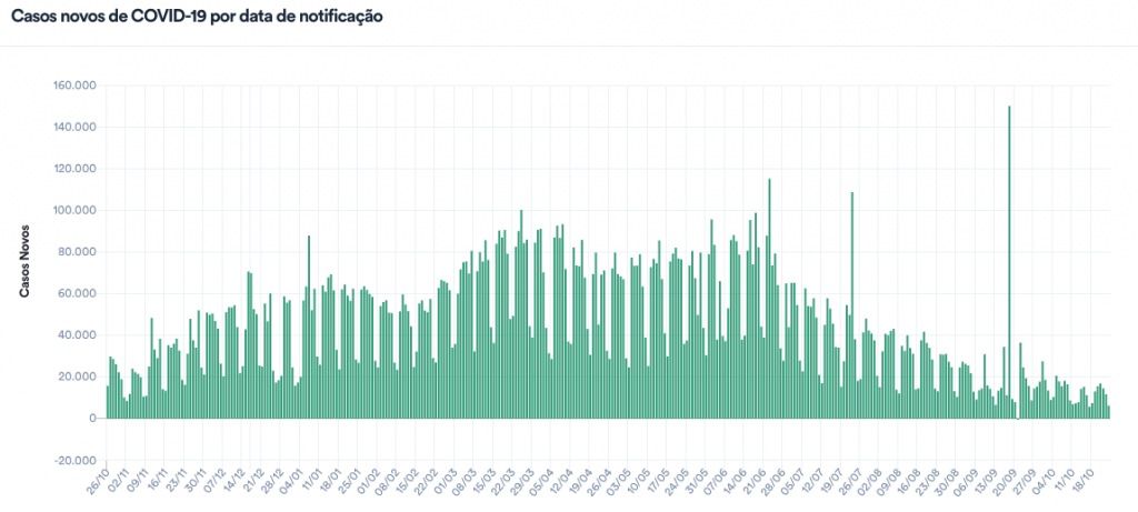 Com os novos números, a soma de pessoas infectadas pelo coronavírus desde o início da pandemia chegou a 21.748.984.