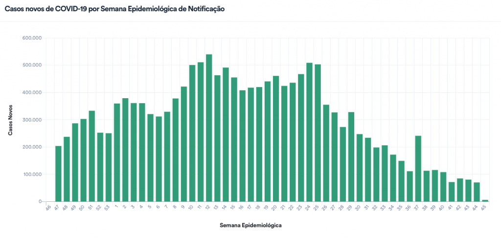 Os números em geral são menores aos domingos e segundas-feiras em razão da redução de equipes para a alimentação dos dados. Após o fim de semana e feriado, em geral há mais registros diários pelo acúmulo de dados atualizado.