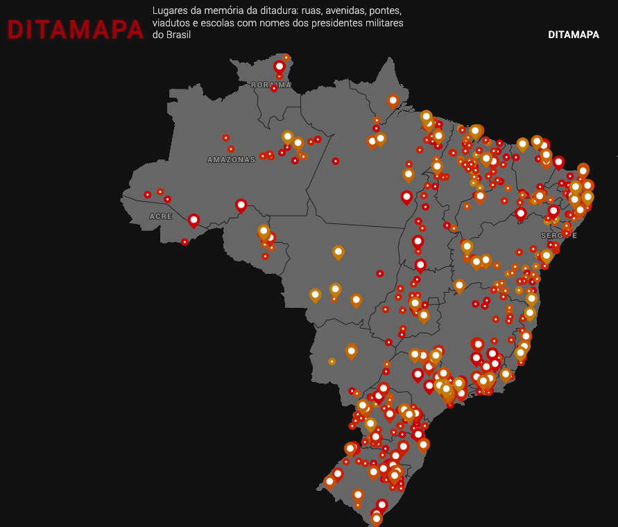 Uma iniciativa que estimula este revisionismo histórico é o site colaborativo Ditamapa, que aponta lugares da memória da ditadura espalhadas pela paisagem brasileira.