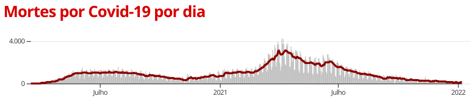 Com isso, a média móvel de mortes nos últimos 7 dias foi a 110. Em comparação à média de 14 dias atrás, a variação foi de +14%, indicando tendência de estabilidade nos óbitos decorrentes da doença.