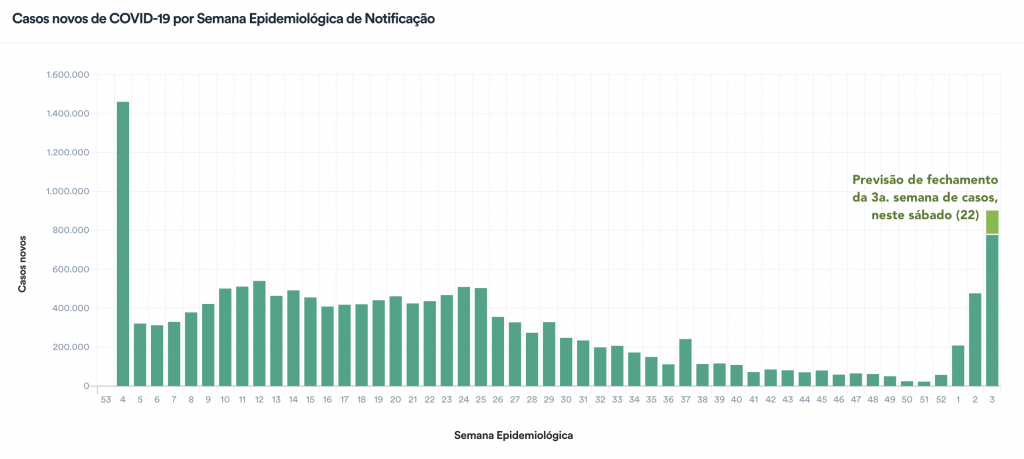 Com isso, a média móvel de casos nos últimos 7 dias foi a 118.840 – a maior marca registrada até aqui, conforme cálculos do consórcio da imprensa. Em comparação à média de 14 dias atrás, a variação foi de +296%, indicando tendência de alta nos casos da doença.