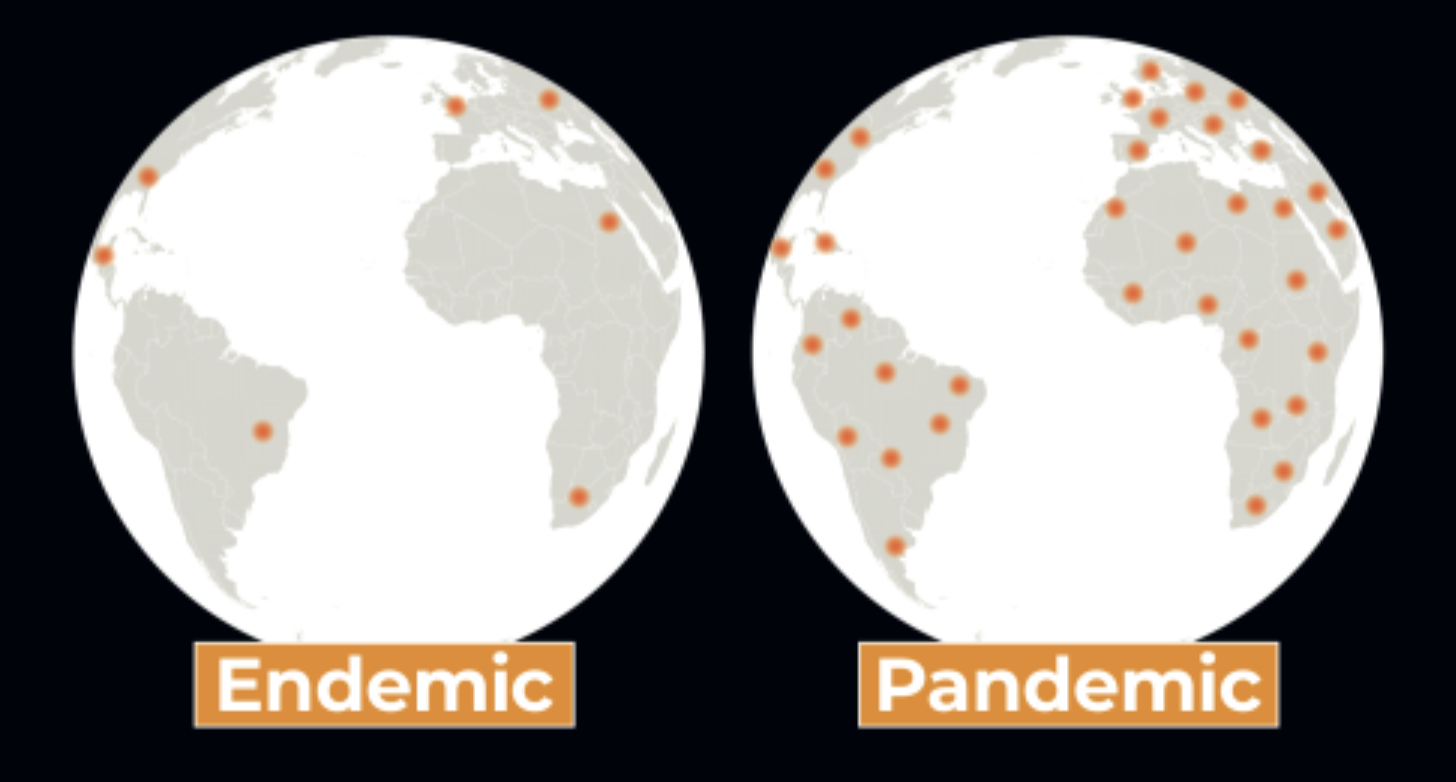 Em comparação, uma endemia – com o prefixo que significa “dentro ou dentro” – é a presença constante de uma doença dentro de uma região, tornando sua disseminação mais previsível.