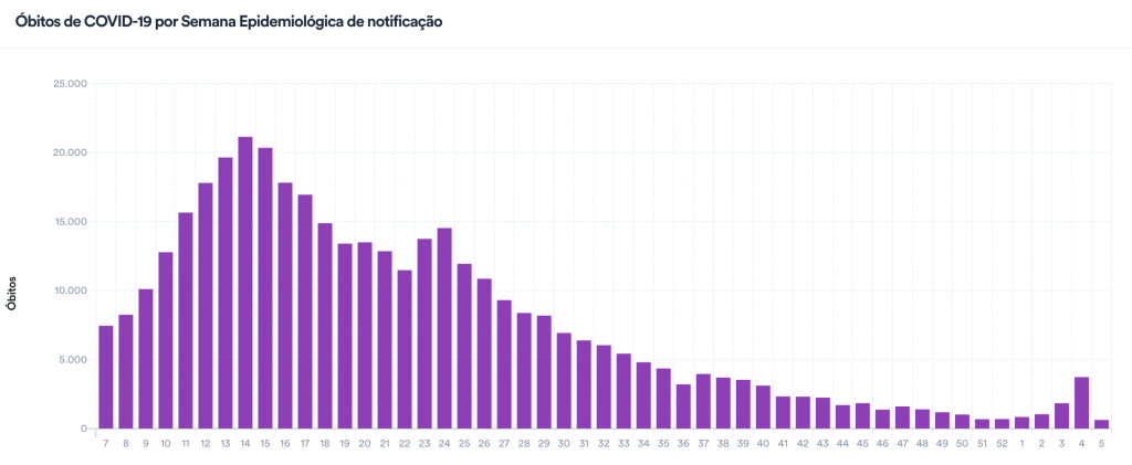 Com isso, segundo cálculo do consórcio da imprensa, a média móvel de mortes nos últimos 7 dias é de 565 — a maior registrada desde 18 de setembro do ano passado (quando também foi de 565). Em comparação à média de 14 dias atrás, a variação foi de +205%, indicando tendência de alta nos óbitos decorrentes da doença.