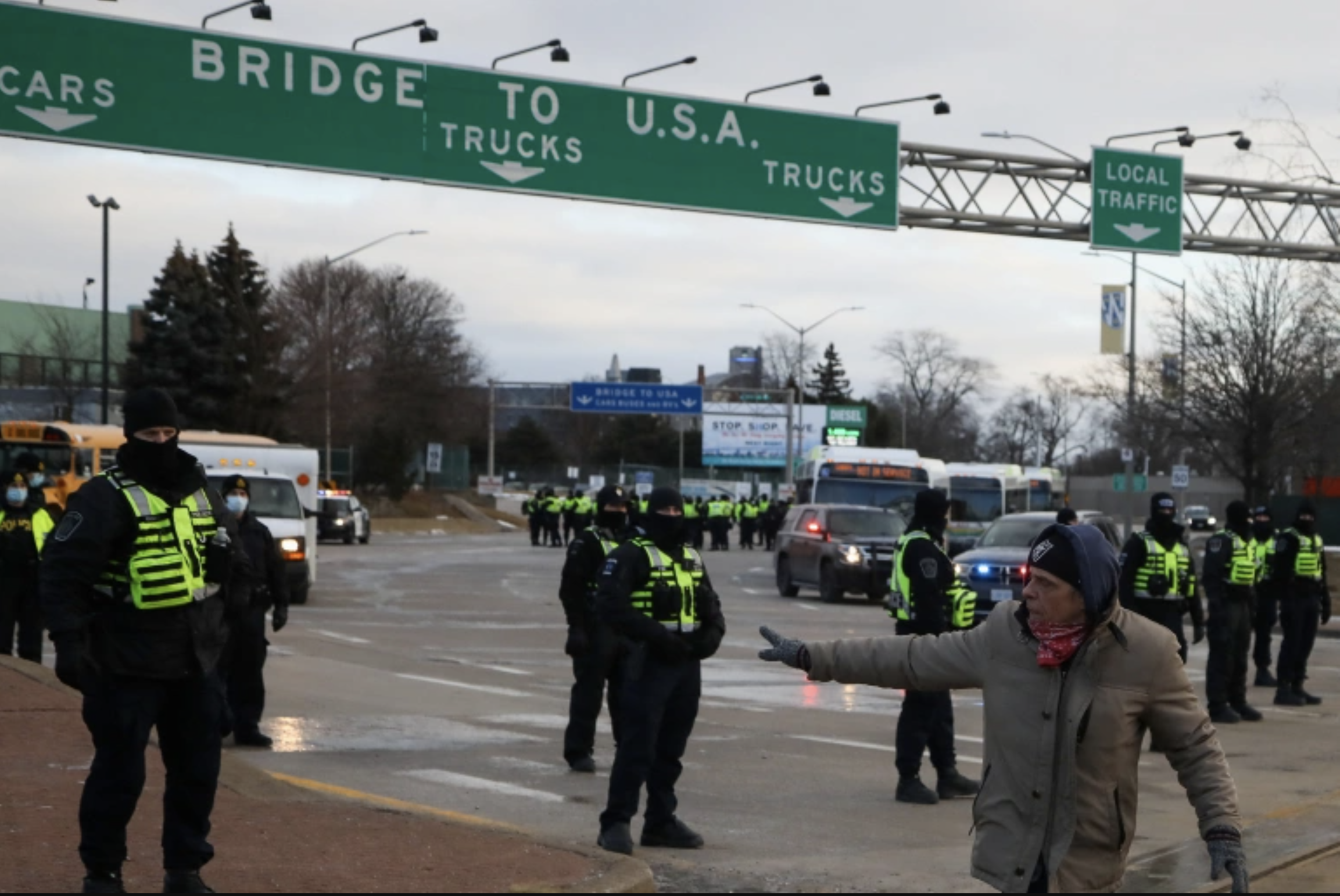 A ação policial no sábado ocorre depois que os manifestantes bloquearam a Ambassador Bridge, uma ligação vital entre Windsor, Ontário, levando a pedidos do presidente dos EUA, Joe Biden, para encerrar o bloqueio. O primeiro-ministro Justin Trudeau prometeu a Biden uma ação rápida para acabar com a crise.