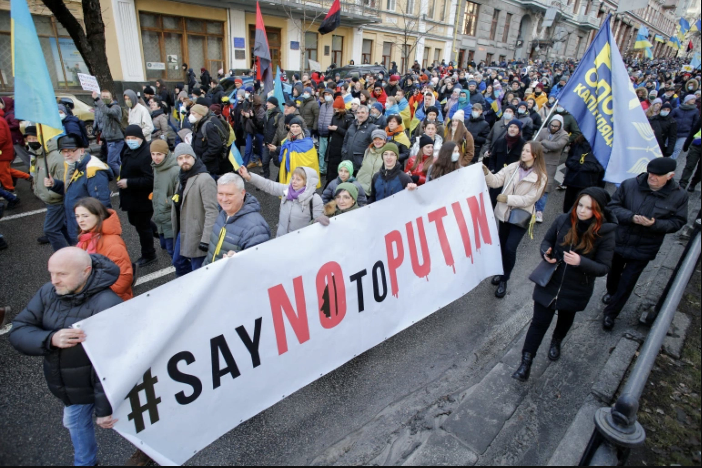 Milhares de ucranianos se reuniram para mostrar unidade em meio a temores de uma invasão russa, enquanto o líder da Ucrânia disse às pessoas para não entrarem em pânico e rechaçou o que ele disse ser um excesso de previsões sombrias de guerra relatadas na mídia.