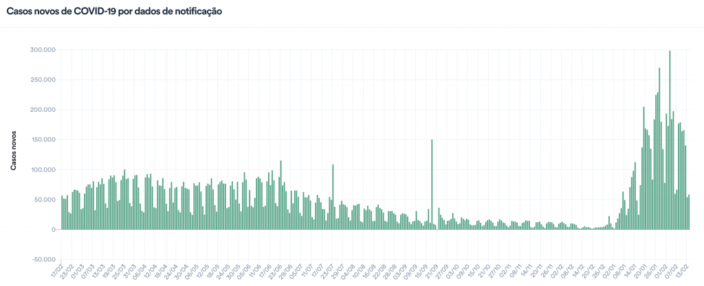 Com isso, a média móvel de casos nos últimos 7 dias foi a 133.713. Em comparação à média de 14 dias atrás, a variação foi de -28%, indicando tendência de queda nos casos da doença pelo 4º dia.