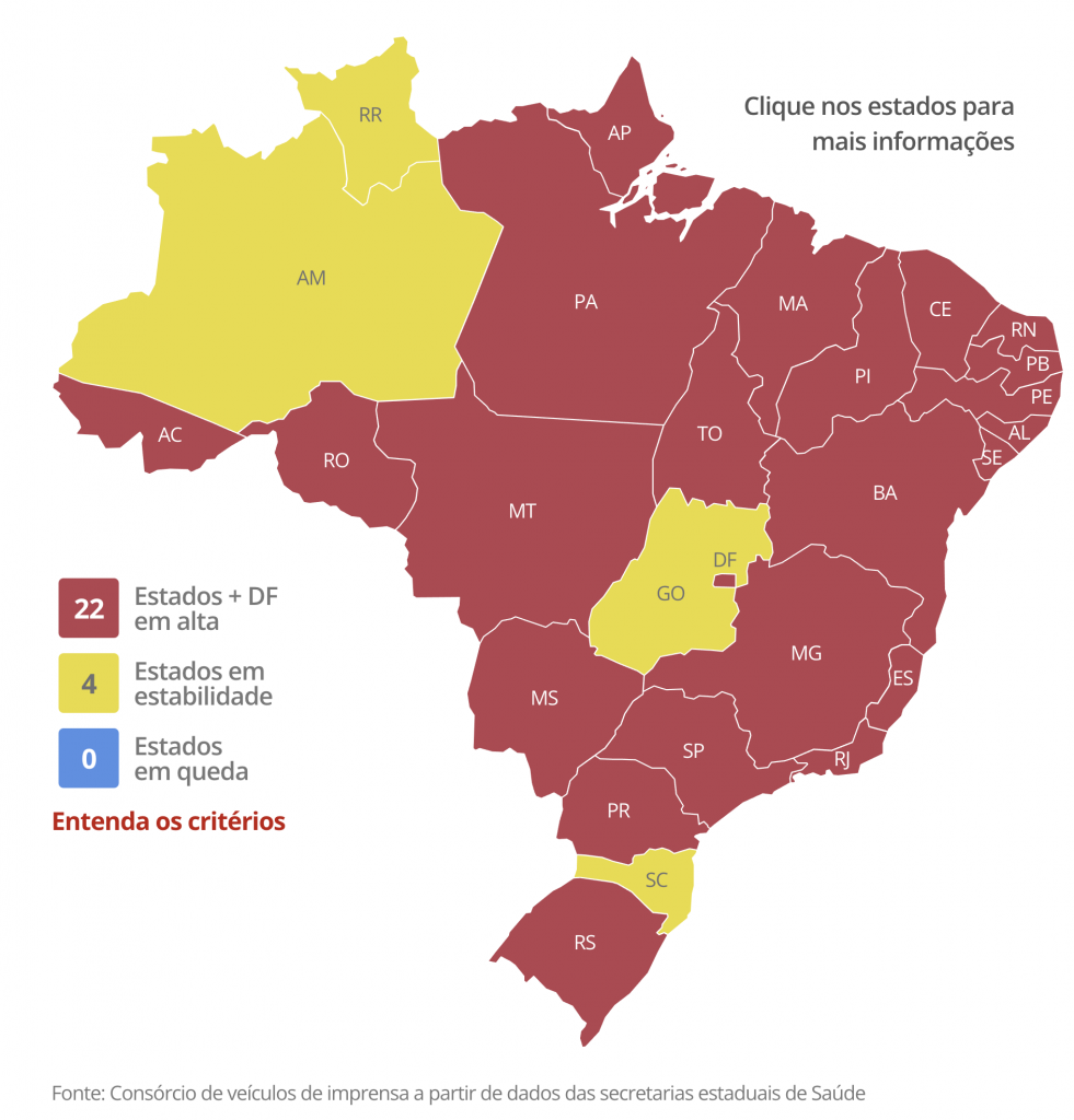 Os altos números e óbitos notificados são acompanhados de baixa nos casos e desaceleração em alguns estados.