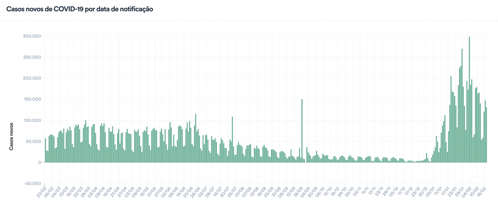 O total de pessoas infectadas pelo coronavírus subiu nesta quinta-feira (17) para 27.937.835. Em 24 horas, foram registrados 131.049 casos de covid-19. Ontem (16), o painel de informações do Ministério da Saúde contabilizava 27.806.786 casos acumulados.