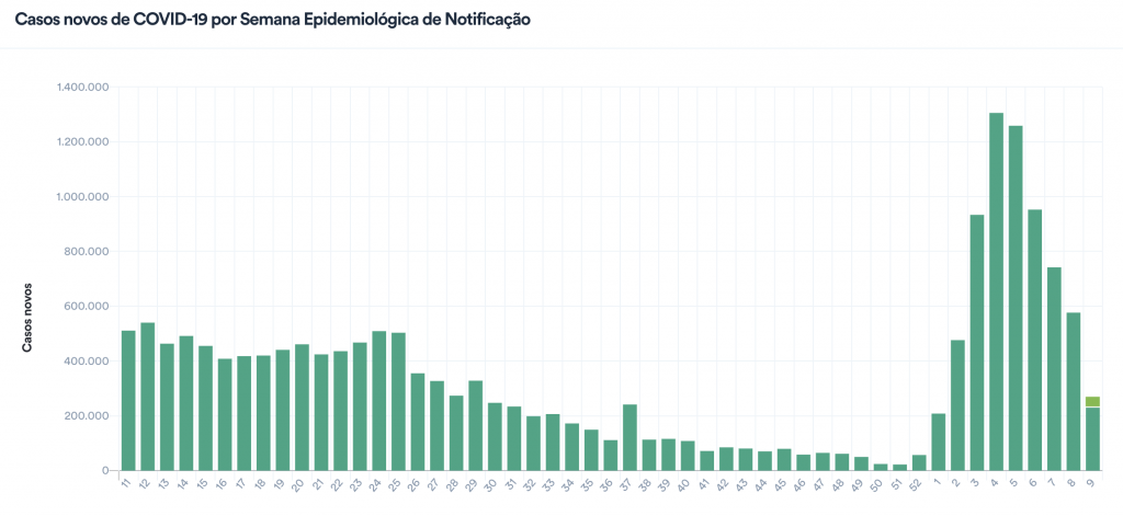 Brasil tem 651.255 óbitos e 28.973.799 casos registrados do novo coronavírus, com queda de cerca de 50% em mortes e contágios. Nenhum estado apresenta aceleração de óbitos, após várias semanas de alta.