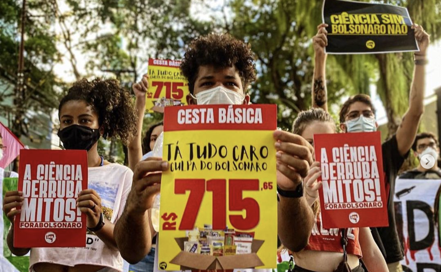 Frente reunindo múltiplas entidades realiza manifestações contra Bolsonaro por cerca de 80 cidades do país, protestando contra aumentos de combustíveis e alimentos.